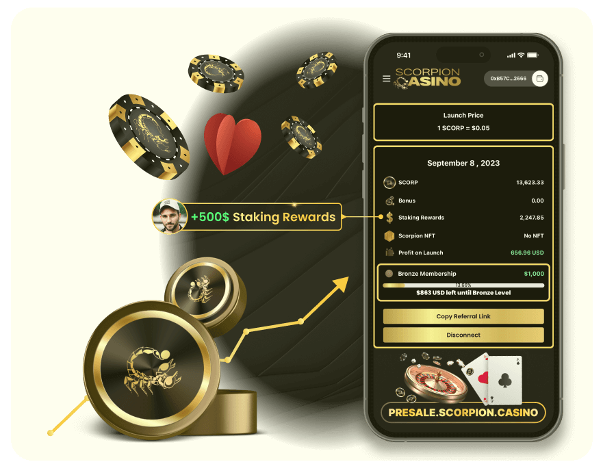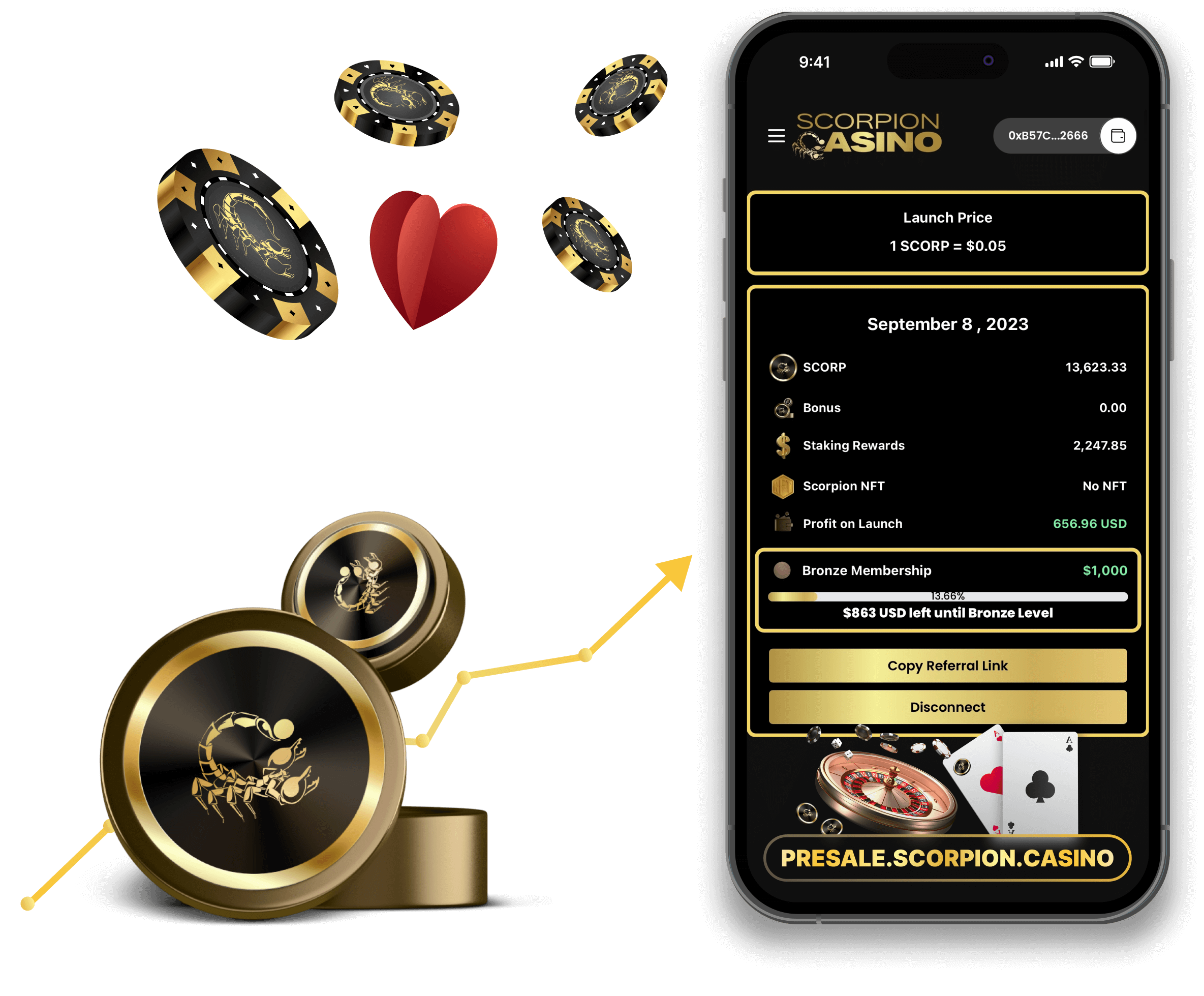 Step into the world of casinos, high stakes, and incredible rewards by joining the Scorpion community today! Experience the unmatched privileges and benefits of being part of the world’s first social online gambling ecosystem powered by $SCORP.