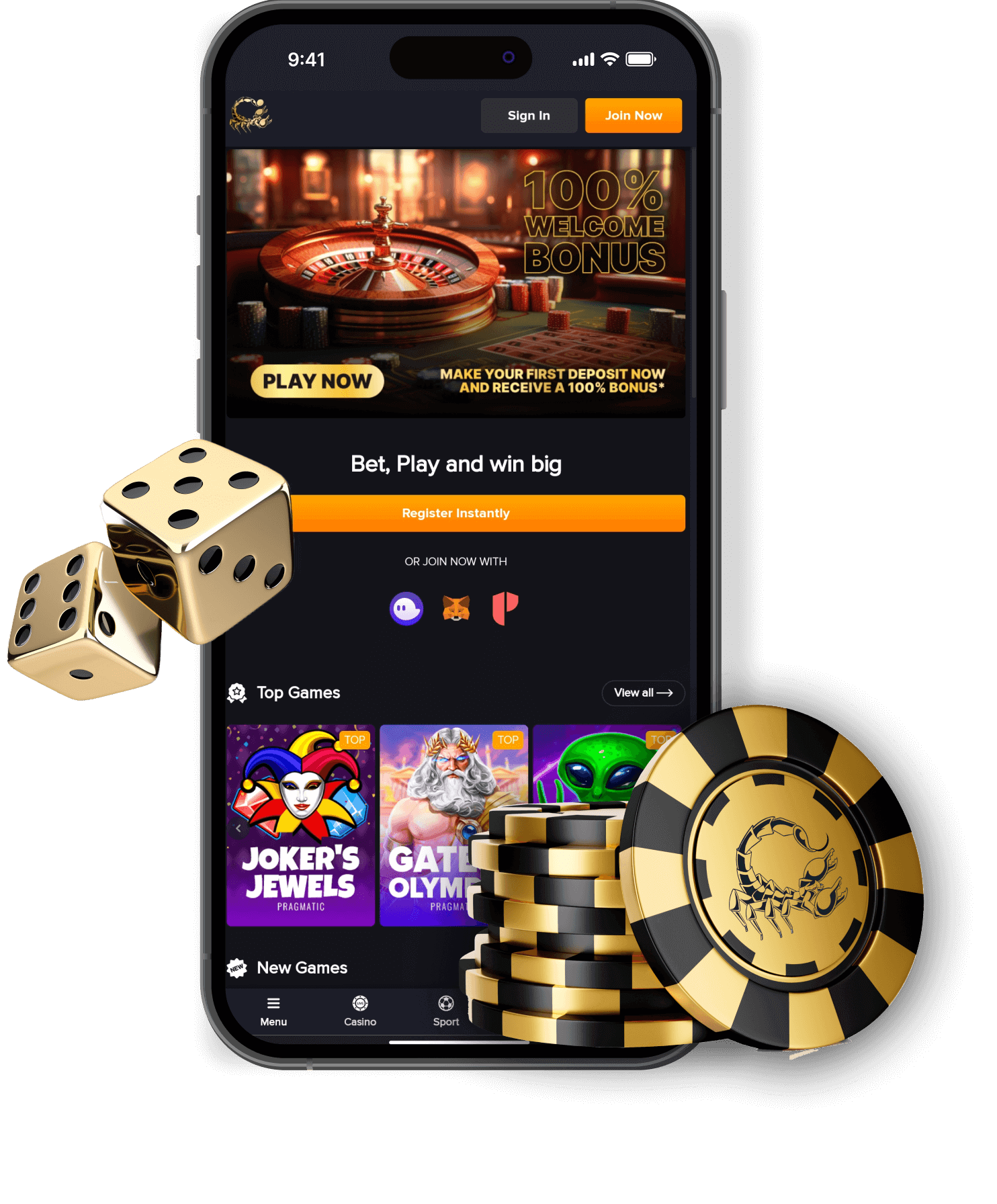 Scorpion Marketing LTD operates the website Scorpion.casino (“Platform”). By using the Platform, you accept our Terms of Service, Privacy Policy, Cookie Policy, and the SCORP Token sale agreement. Cryptocurrency may be unregulated in your jurisdiction. The value of cryptocurrencies may go down as well as up. Profits may be subject to capital gains or other taxes applicable in your jurisdiction. Nothing on this website should be construed as an offer or recommendation to buy, sell or invest. You are solely responsible for determining whether any purchase or related transaction is appropriate for you based on your personal objectives, financial situation, and risk tolerance. You should consult with trusted, licensed legal professionals and advisors for legal, tax, insurance, or business advice. Scorpion Casino does not guarantee any performance, outcome, or return of capital for any cryptocurrency posted on this website. By accessing this site and any pages thereof, you agree to be bound by the SCORP sales agreement. Buying cryptocurrencies involves risk and may result in partial or total loss.